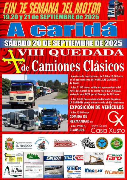 La VIII Quedada de Camiones Clásicos en A Caridá se vivirá el sábado 20 de septiembre de 2025 en el marco del Fin de Semana del Motor que se desarrollará en el concejo de El Franco.